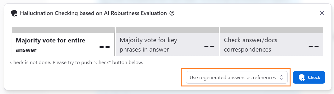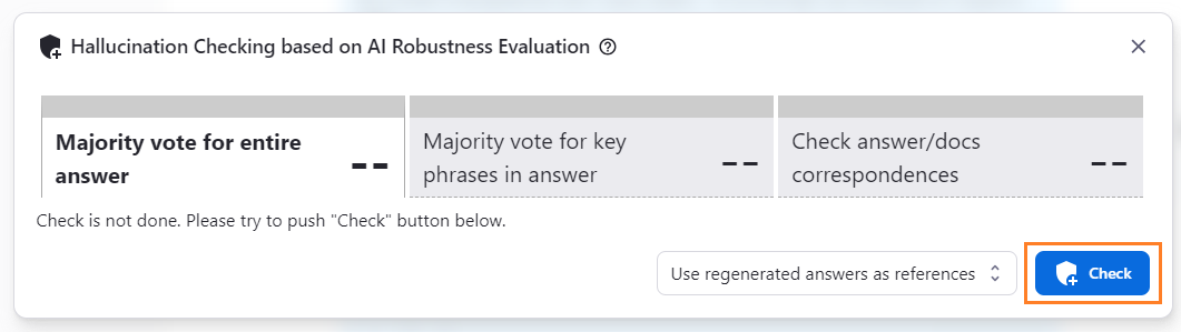 When you press the button with the shield icon at the bottom of the answer frame you want to detect, the dialog for detecting the hallucination opens.